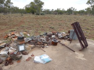 I continued round the right edge of the town, deliberately, because I had an end goal in mind. When my friend and I had arrived the afternoon before we’d had a quick drive round to scout out potential camping spots and I’d noticed a collection of clutter at one site. Eventually I retraced our path and found what looked like all the old bits and pieces of town life that campers had discovered during their time at Mary K. It didn’t look like anything particularly exciting: rusty pipes, bits of unknown machines, cracked bricks, even an old toy train. While I was looking through this hoarder’s paradise, however, I noticed a little cubbyhole with a faded koala sticker on it. Inside it were a couple of notebooks encased safely in plastic Ziploc bags. I’d struck historian gold.