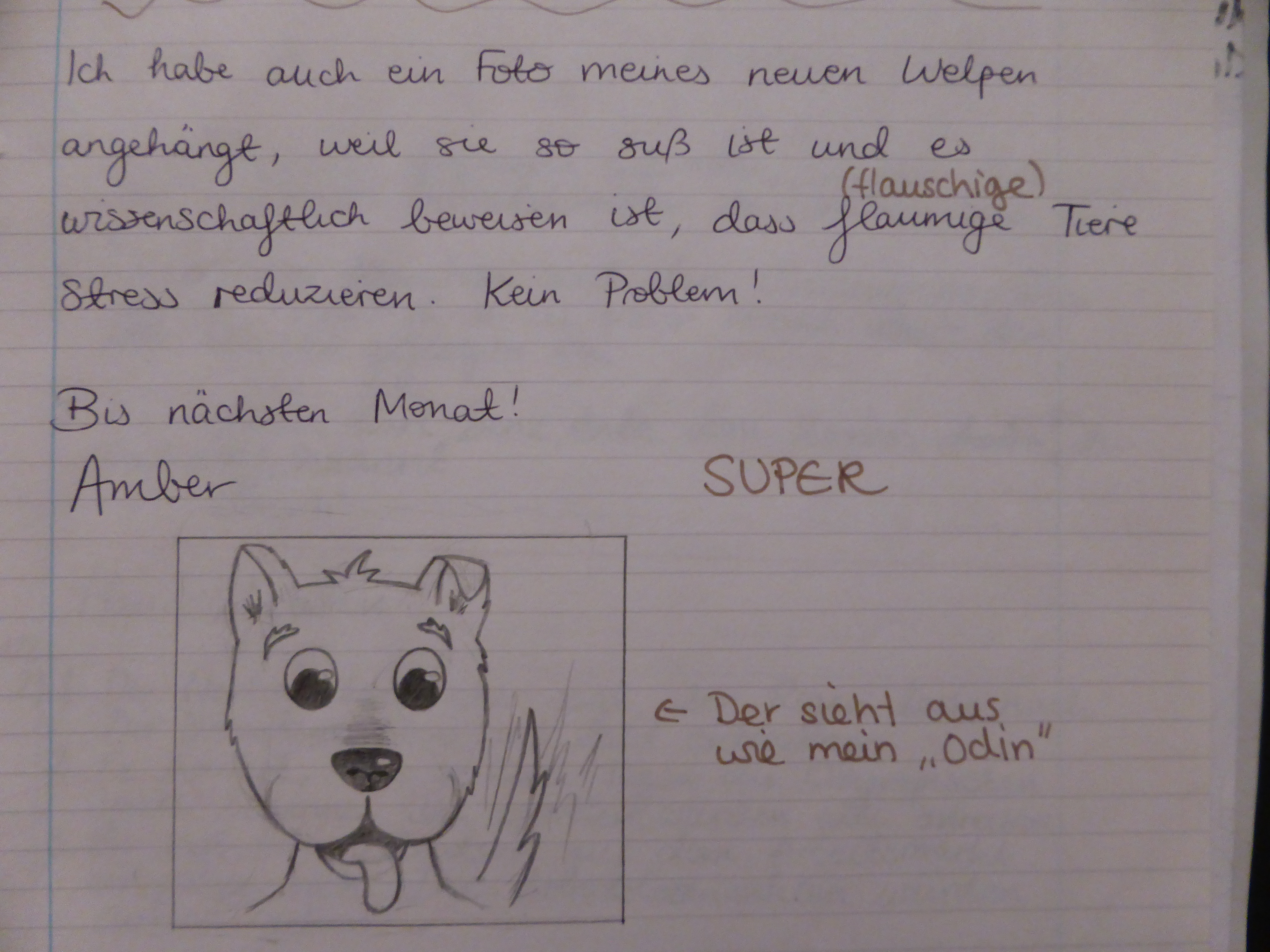 I wrote a heartfelt email response to a fictional friend who was stressed about exams, at the end of which I drew a puppy (a hypothetical attachment) because ‘fluffy animals are scientifically proven to reduce stress’.