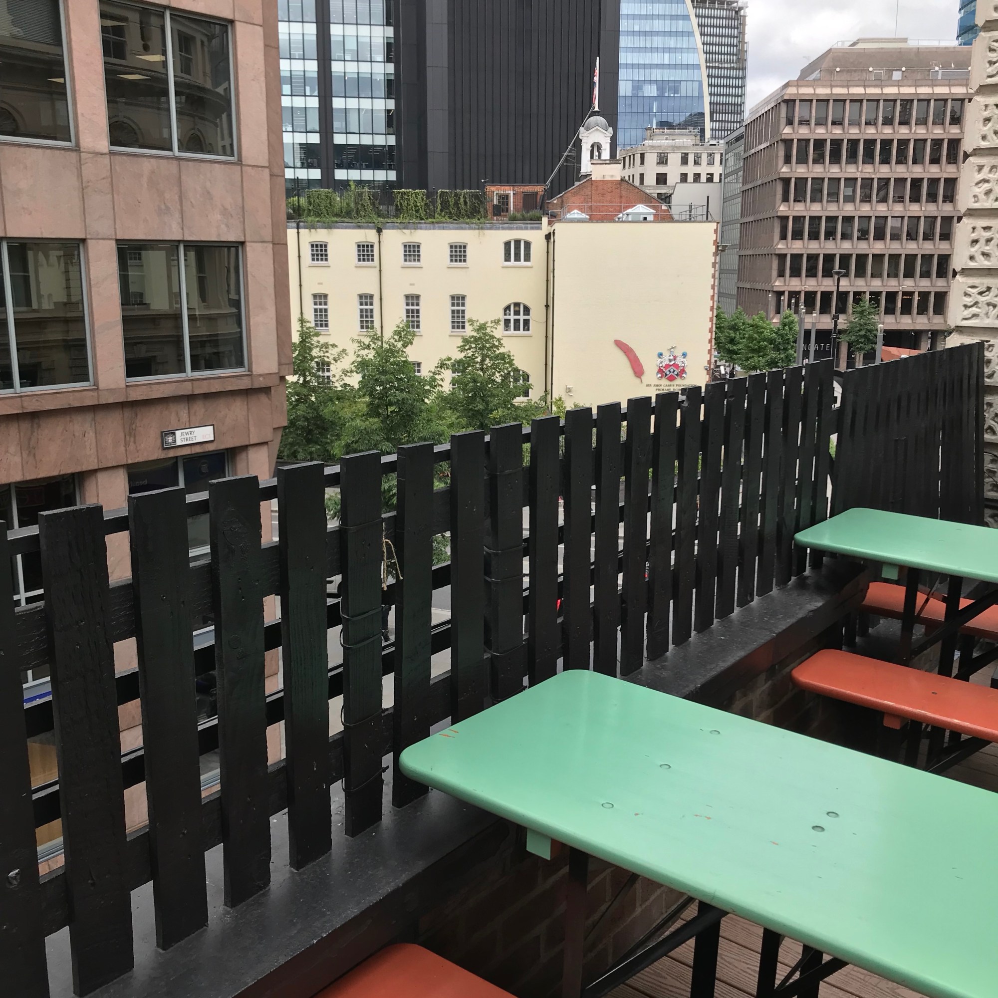 Now, walking away from the Walbrook and forgetting the Forgotten Streams, head up towards Bank Junction and find Lombard Street. Walking down Lombard, you’ll see St. Mary Woolnoth (1727), St. Edmund’s church (1679) and the much more modern Walkie Talkie (2014). At this point, you will be on Fenchurch street, and a little bit further on you will arrive at Fen Court. At the top of Fen Court is the Garden at 120. You can access the 15th floor garden via a stunning LED screen ceiling display and a lift. At the moment the display is Botanic by Jennifer Steinkamp as part of Sculpture in the City, an annual outdoor art display in City of London. This lovely rooftop space opened February this year and one of the best things about it is that you can get gorgeous views of London without having to spend a penny. At the moment there’s no charge and also no booking process – you can just show up! It’s open Monday to Friday and now that it’s summer the garden has fully come into its own.