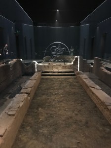 Jumping forward over 1,000 years, the temple was rediscovered in 1954 and is now open to public viewing. Even though not that much of it remains, there’s an aura of mystery around the whole thing (certainly helped by the light and sound effects) and it’s fascinating to have a look at some of the 600 objects on display (of over 14,000 artefacts actually found on the site). Included in the collection is a writing tablet with the first known reference to London, as well as the earliest financial document found in the City of London. One of my favourites is a minuscule gladiator helmet amulet made of amber – see if you can spot it.