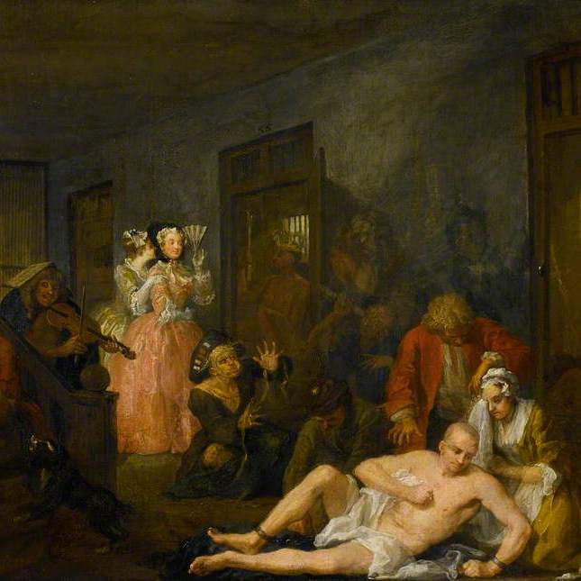 Hogarth was born in London, he was apprenticed to a silversmith, but quickly realised that his skills lay in engraving narrative scenes rather than precious metals. He focused on the real lives of Londoners, almost always with a moral edge, and he drew on the pitfalls of modern life under the civilised exterior of Georgian society. The thing to know about Hogarth as well is that almost all of his works were produced in series. So it was several paintings (later turned into prints) which made up one story.