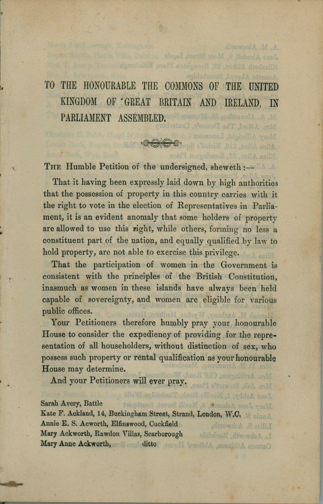 - ‘Presenting the 1866 Petition’, UK Parliament, (accessed 05/01/2021)