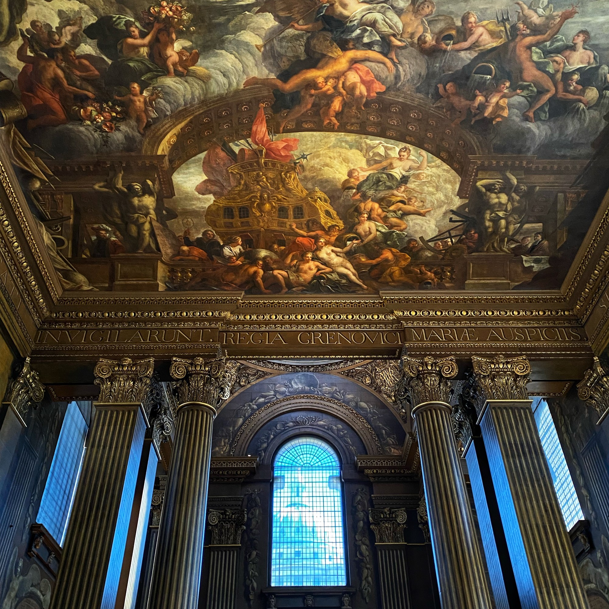 The Old Royal Naval College has an excellent virtual tour of the hall if you want to have a closer look (and is probably a more practical long-term solution than scaffolding…).