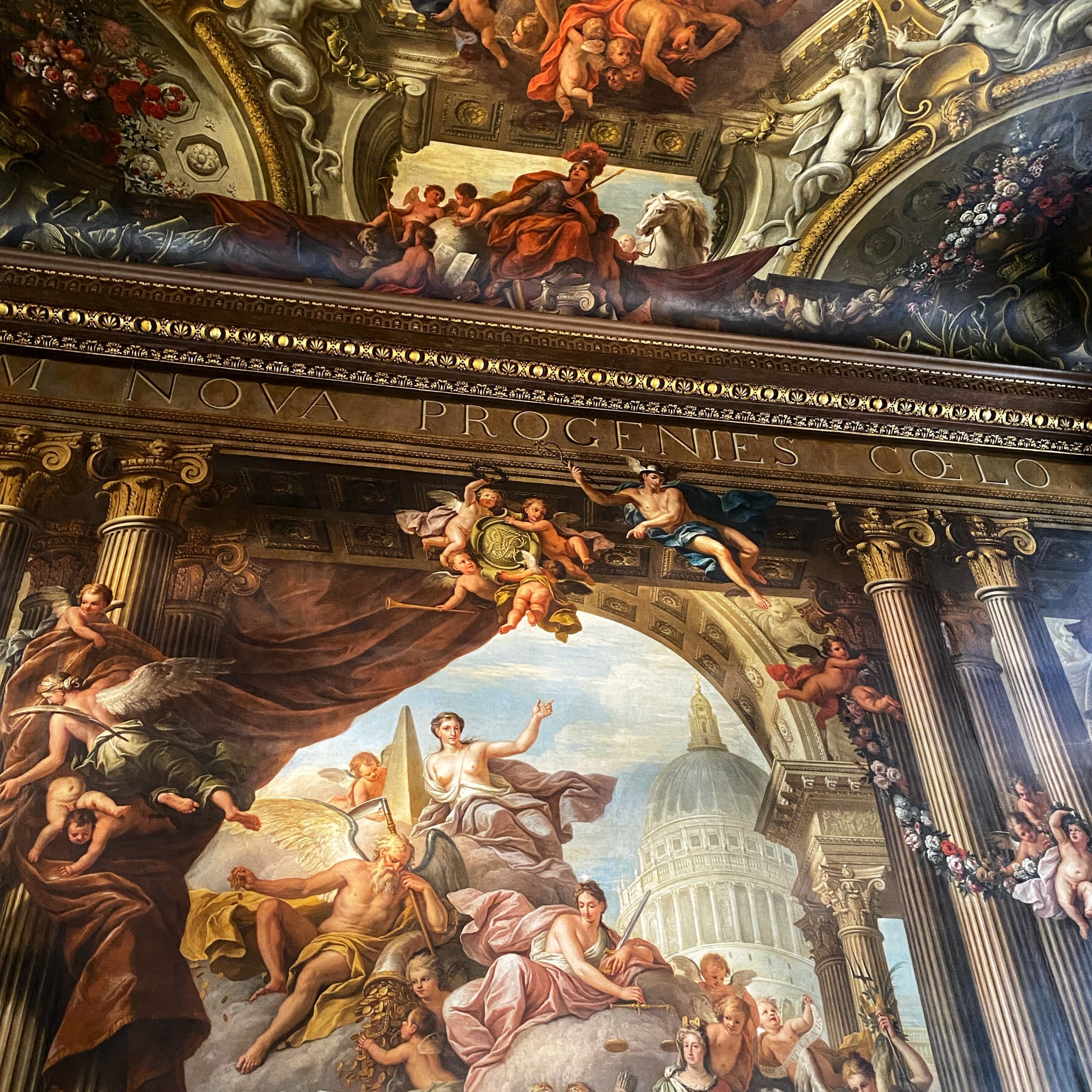 It’s looking particularly flash since its restoration, which was only finished in 2019. As part of the project, although the normal majesty of the Hall was temporarily hidden under a complex skeleton of scaffolding, visitors had access to an experience arguably more special. You were allowed to climb the scaffolding and see the paintings up close and personal, in a way that we probably won’t be able to appreciate again in our lifetime. It felt so special to be that close to the paintings. I also developed an even greater respect for the artists (and conservators) because it’s so hard to get a sense of perspective and proportion when you’re that physically close to the work! I found it hard enough to see the paintings, let alone create or conserve them.