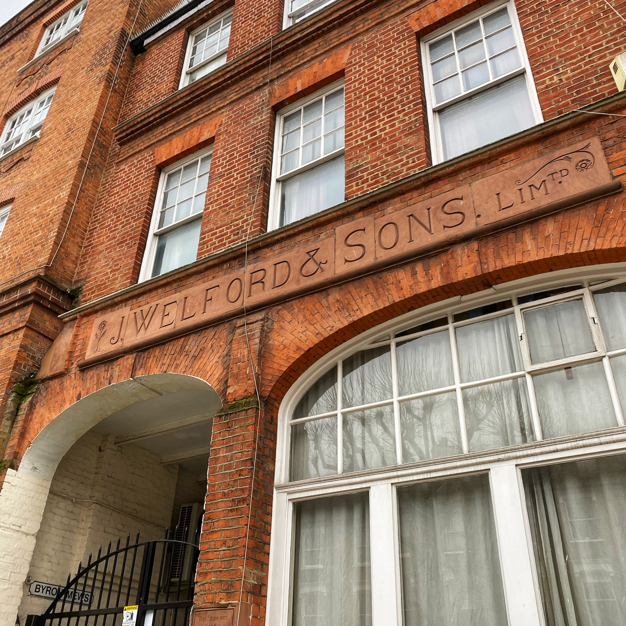 She has been largely forgotten and neglected, but she was once the proud figurehead of a dairy called J. Welford and Sons. Sometimes referred to as Warwick Farm Dairies. Not just any dairy either, but, at one point, the largest dairy in London! You can still find the building on the corner of Shirland Road and Elgin Avenue with the many, many references to the dairy all over the facade.