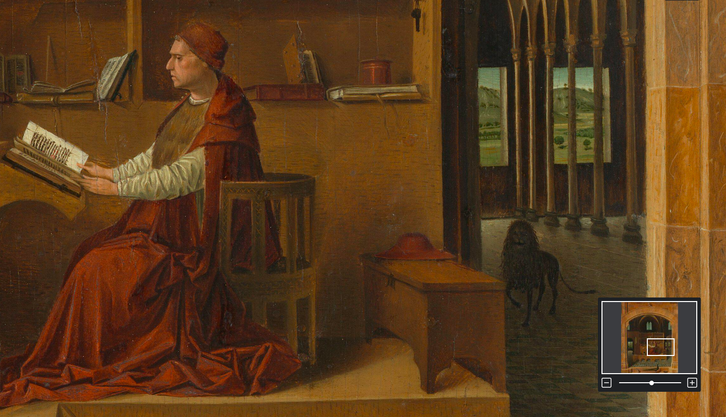 Today we’re going to be talking about Saint Jerome in his Study, painted by Antonello da Messina around 1475, which you can see in the National Gallery in London.