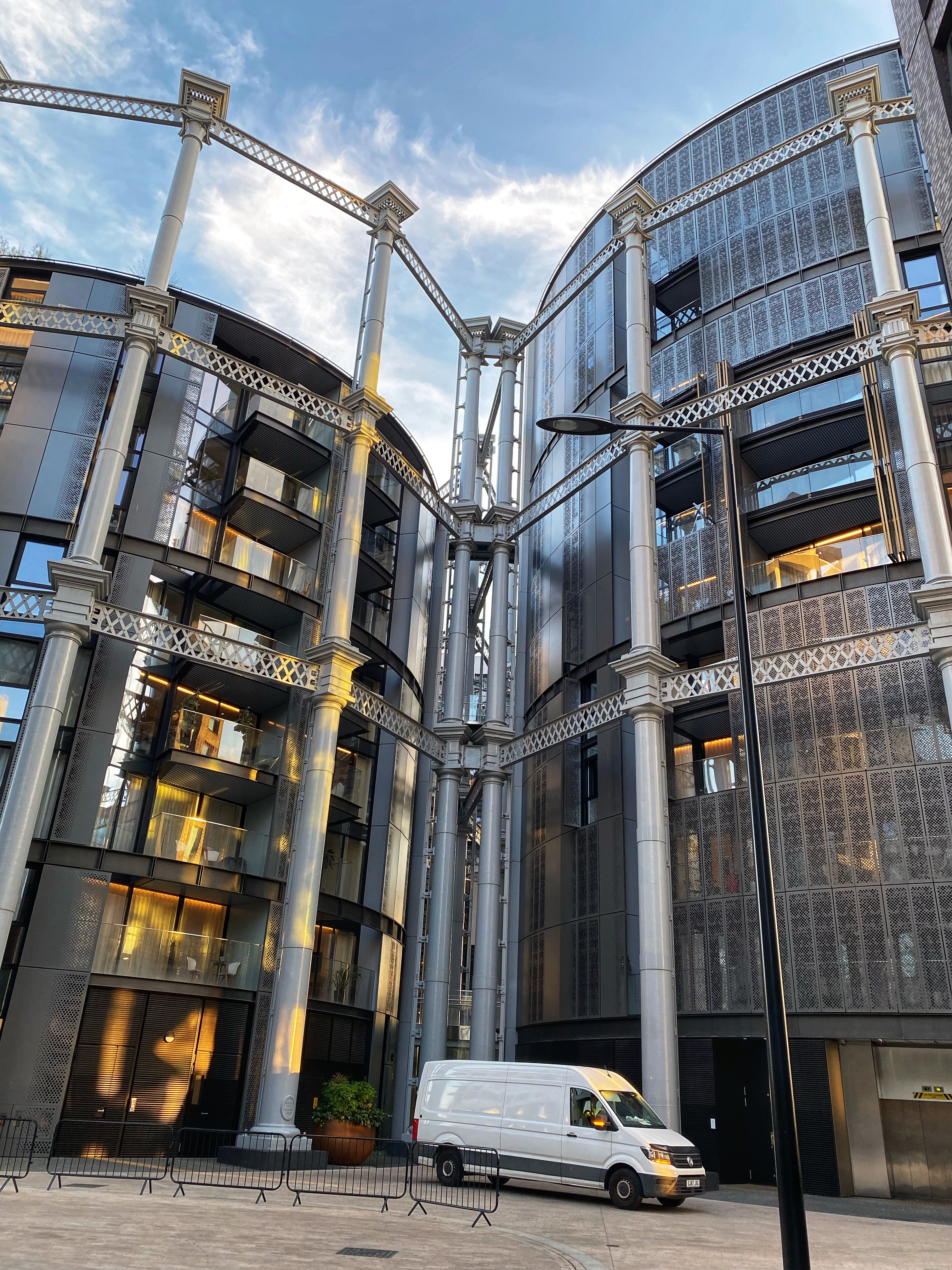 The Gas Holders are slightly further west from Coal Drops Yard. They are some of the most unique conversions to happen in King’s Cross. I mean, who ever thought there would be people living in old gas holders??