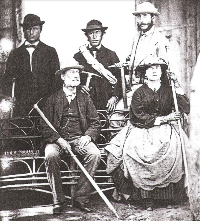I mentioned at the beginning of this post that some women were making these astonishing climbs in corsets and skirts – as if life wasn’t already hard enough. That wasn’t exclusively the case, however. There are, for example, several photos of Lizzie setting off for climbs kitted out in her skirts, but this was just for propriety’s sake. Once out of the public eye, she would change into more appropriate clothing. Such was the anxiety of being discovered, however, that during one expedition Lizzie was almost at the end of a traverse of the Rothorn in Switzerland when she realised she’d left her skirt at the summit. She went back for it.
