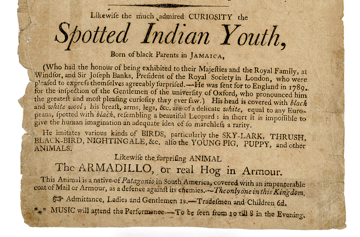 Bobey was deemed a curiosity because he had a condition which caused the patchy pigmentation of his skin. As a result of his appearance, from the age of just two years old, he was being exhibited in Jamaica. And sadly, he wasn’t alone. There are several other examples of people, of children, who looked similar to Bobey being put on display, paraded like animals for the entertainment of white audiences.
