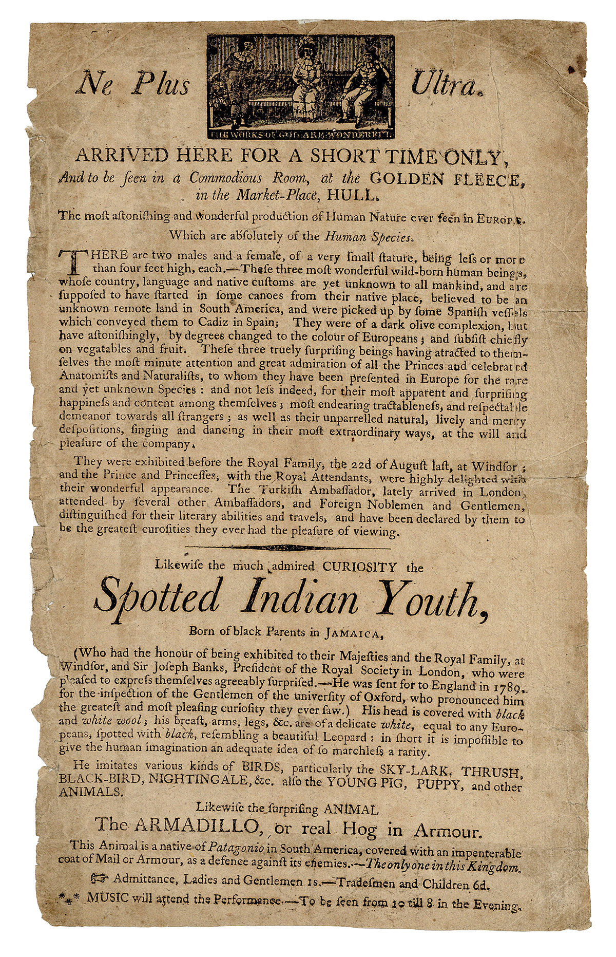 Bobey was also exhibited in other parts of the country. This is an advert from one such occasion when Bobey was put on display in Hull with three other people, possibly with dwarfism… and an armadillo. Entry was a shilling.