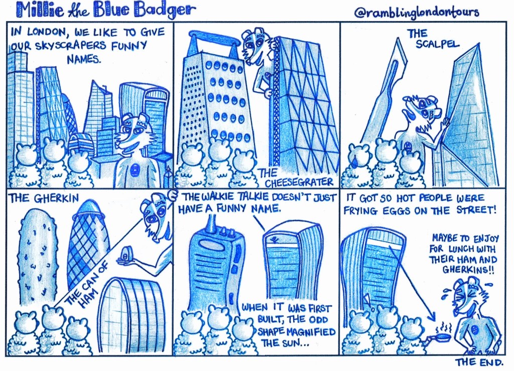 Covid-19 made me explore tour guiding in new and inventive ways. In March 2020, I qualified as a London Blue Badge tour guide, but a global pandemic meant I couldn’t actually go out and guide – the silver lining of that experience was the birth of Millie! The Blue Badger who was able to explore London while I was stuck at home 🦡