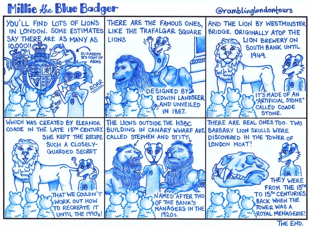 A special appearance from Millie today for World Lion Day (originally posted 10/08/2021), exploring some of the exceptional lions of London – past and present! 🦁 From lion statues to the skulls of real lions discovered in the Tower of London moat.