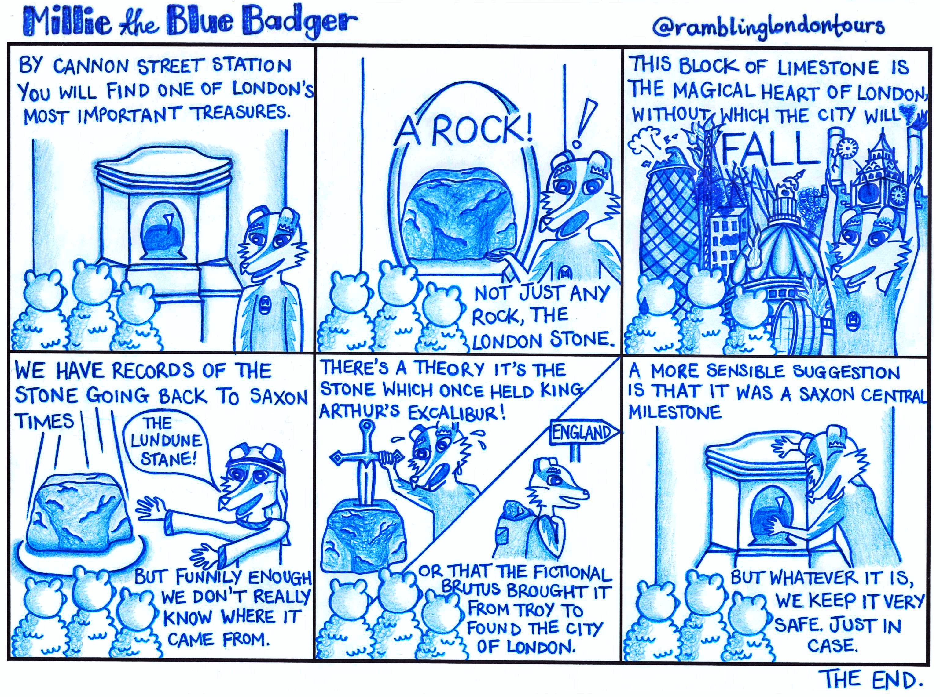 This month, Millie is telling the story of the London Stone, set into the wall of 111 Cannon Street. It’s considered so important, it has its own website! It’s one of London’s most ancient landmarks, featured by none other than Shakespeare and William Blake, although it’s fallen into obscurity somewhat in recent times!