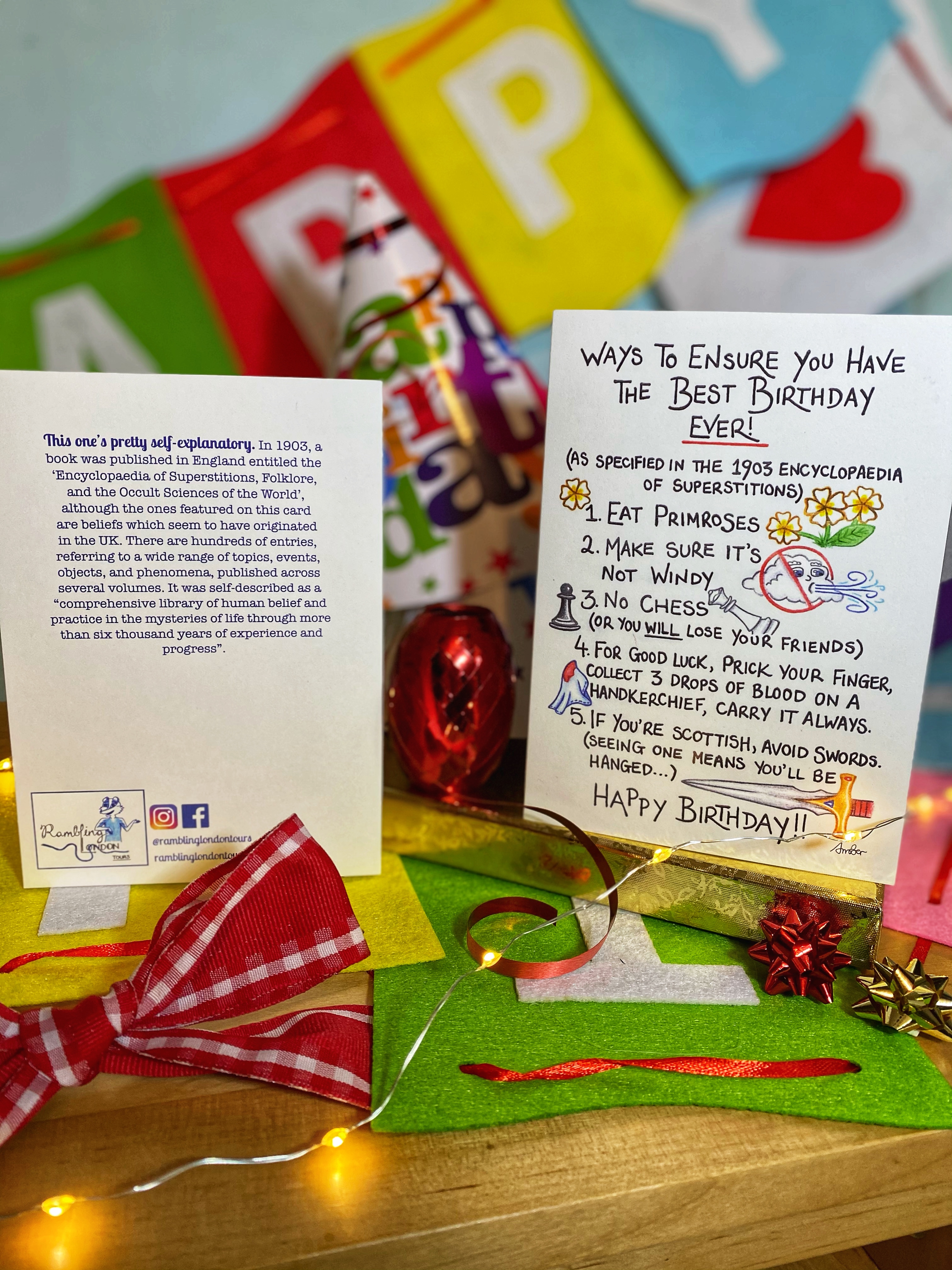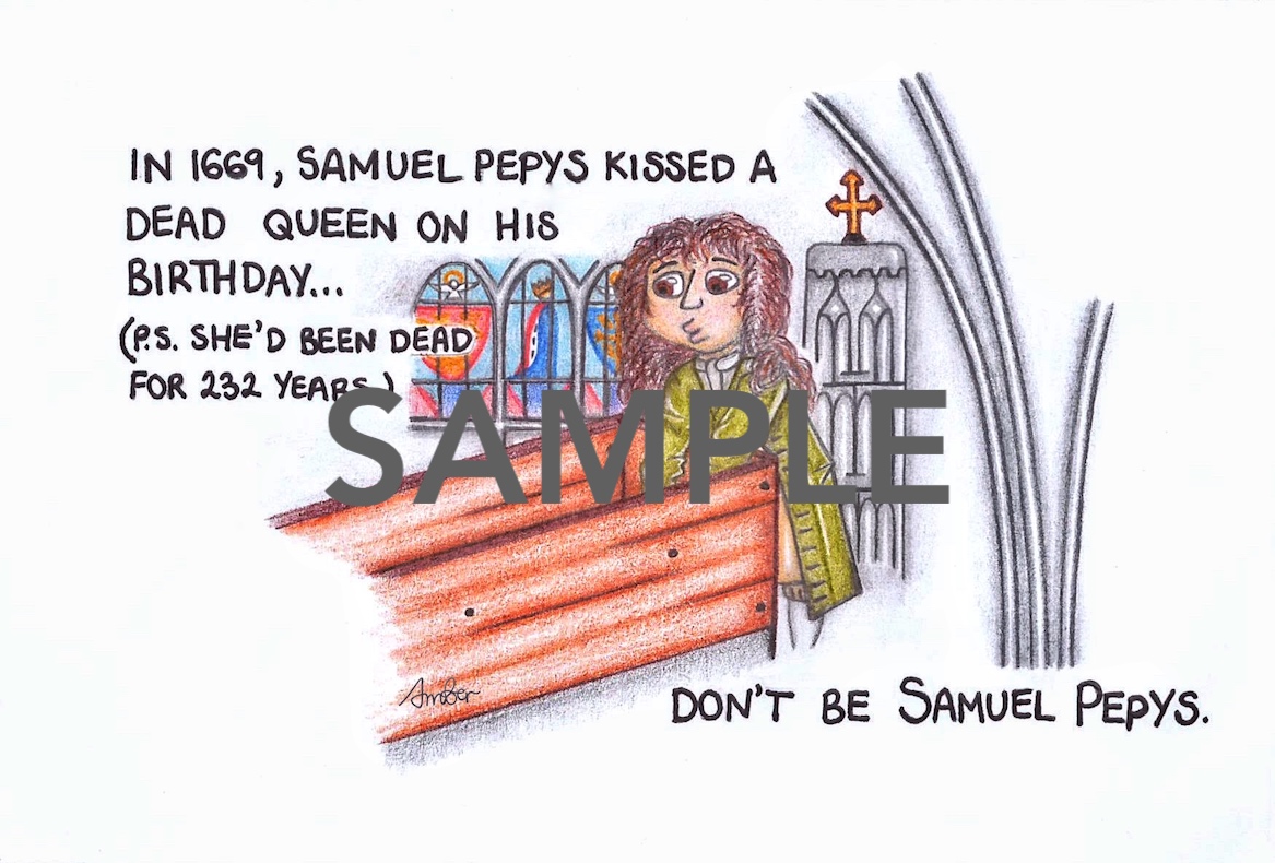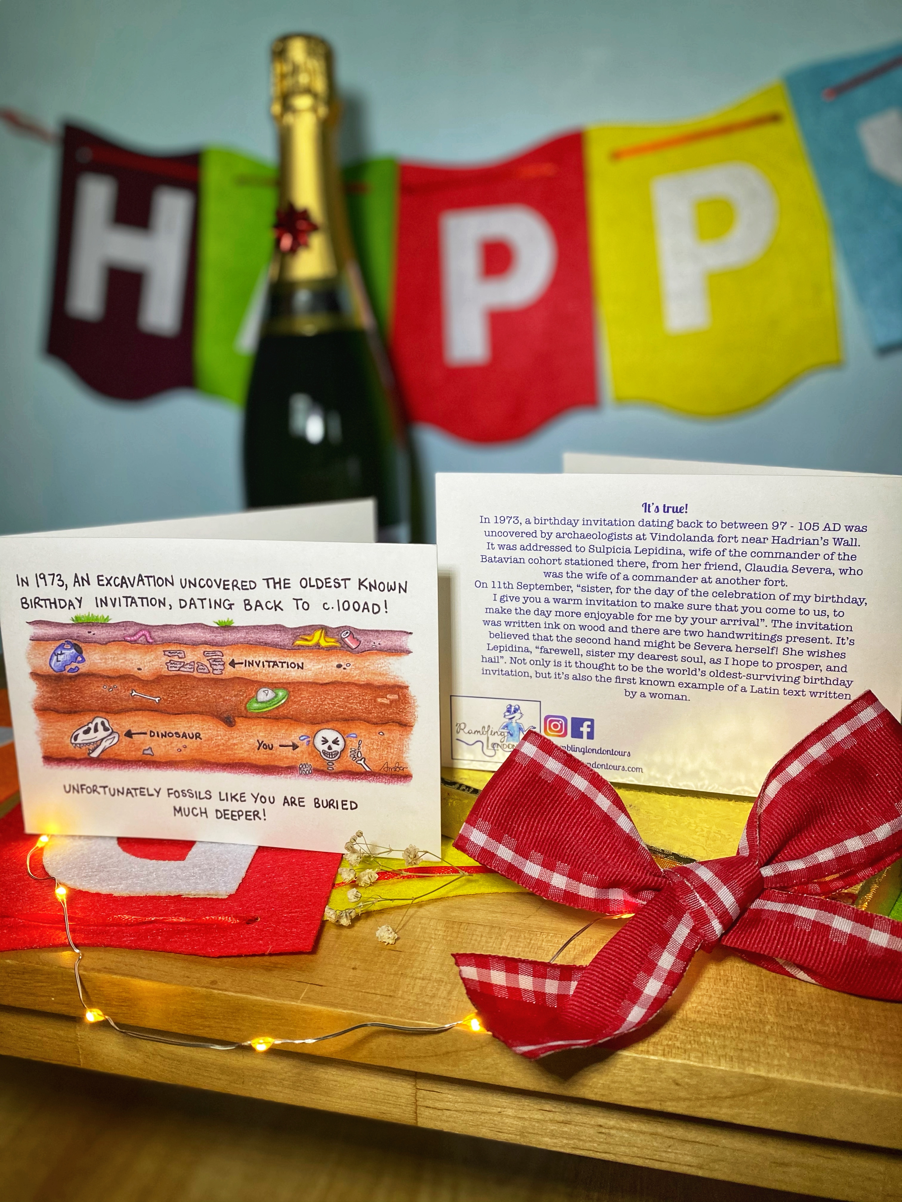 What makes me especially excited about these cards though is that each one is based on a birthday-related event in British history, from the world’s oldest known birthday invitation discovered in a Roman fort to diarist Samuel Pepys treating himself to a kiss from a dead Queen on his 36th birthday. They’re fun, unique, and educational!